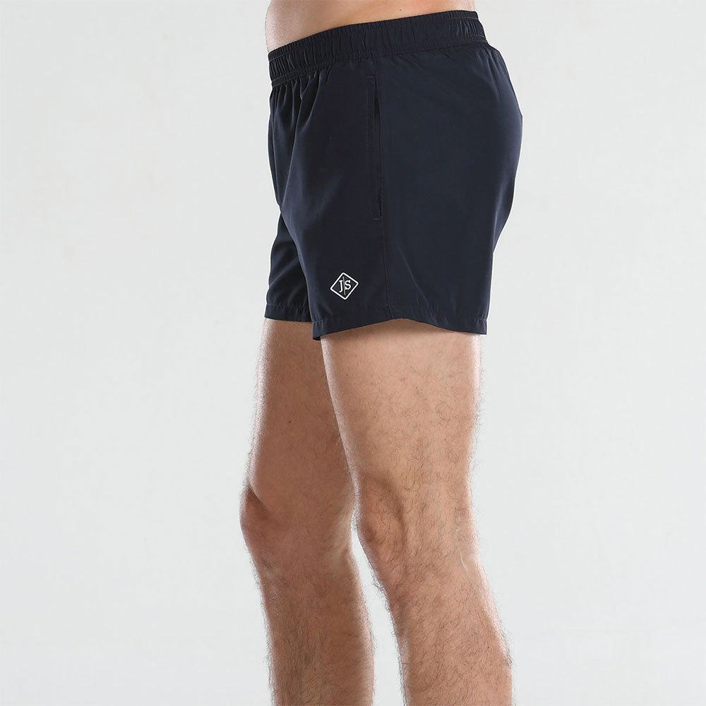 Cintura suspensa em malha de poliéster, dois bolsos laterais e um interior.