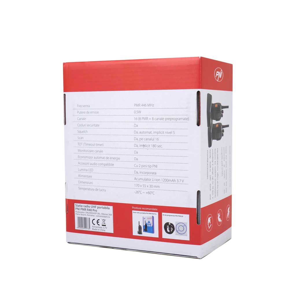 PNI PMR R40 Pro oferece aos usuários várias funções: predefinição de Squelch automático no nível 5, TOT (temporizador de tempo limite) predefinido em 180 segundos e monitoramento de canal.