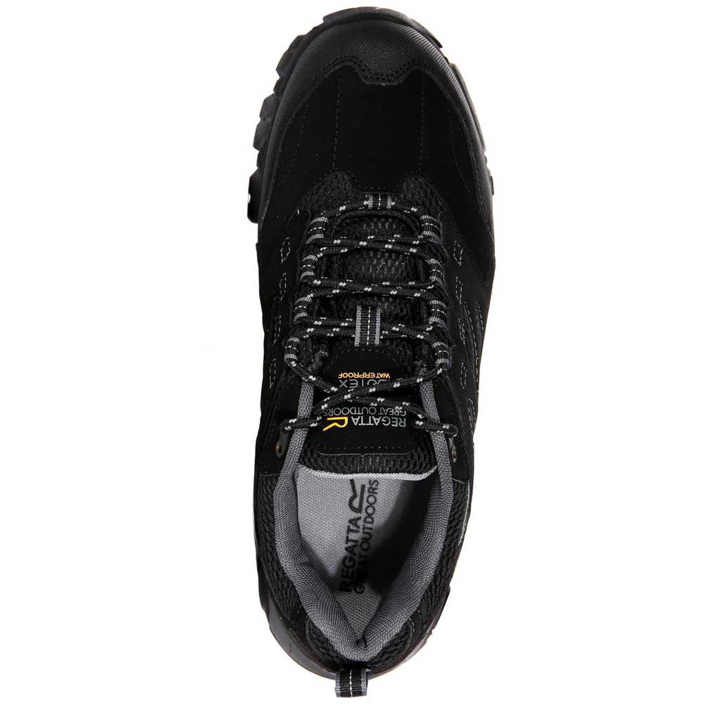 Olhal duplo para fixação segura no calcanhar.
